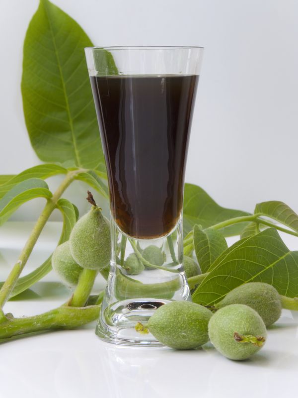 100 g rozdrveného čerstvého zeleného oplodia alebo listov orecha a 5 g nadrobno posekaných mandlí zalejeme ½ l čistej pálenky. Necháme pri izbovej teplote 2 - 3 týždne lúhovať, občas pretrasieme. Pijeme denne 1 kalíštek nalačno, najlepšie teda ráno, na zlepšenie trávenia, pri zahlienení čriev, parazitoch alebo ako zdravý aperitív.