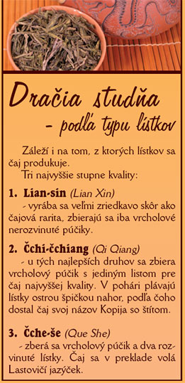 Dračia studňa, Lung-ťing, je cenená ako najlepší a najslávnejší čaj Číny. Patrí tiež k tradičným čajom...