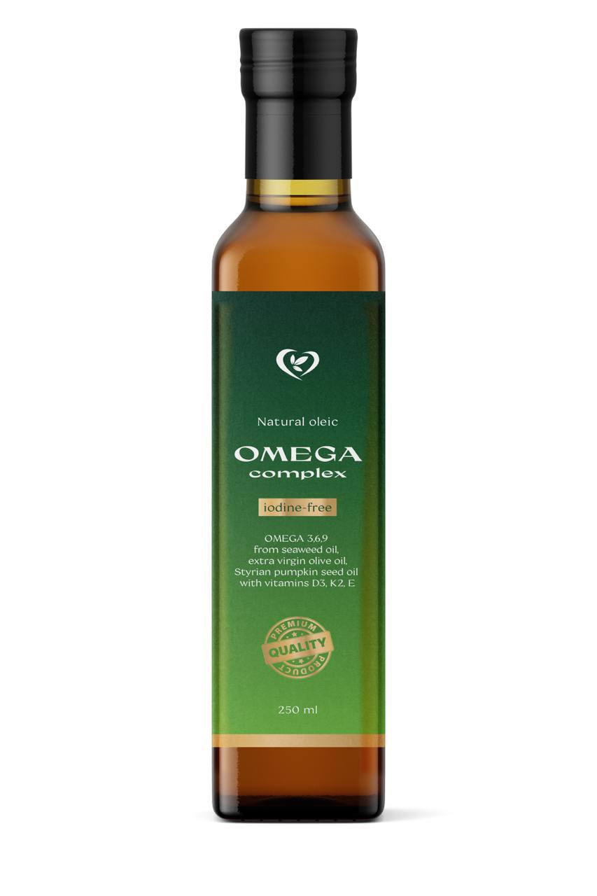Zloženie: Štajerský tekvicový olej zdroj omega 6,9, extra panenský olivový olej, olej z morských rias zdroj omega 3, EPA a DHA, vitamín E, vitamín D3, vitamín K2.