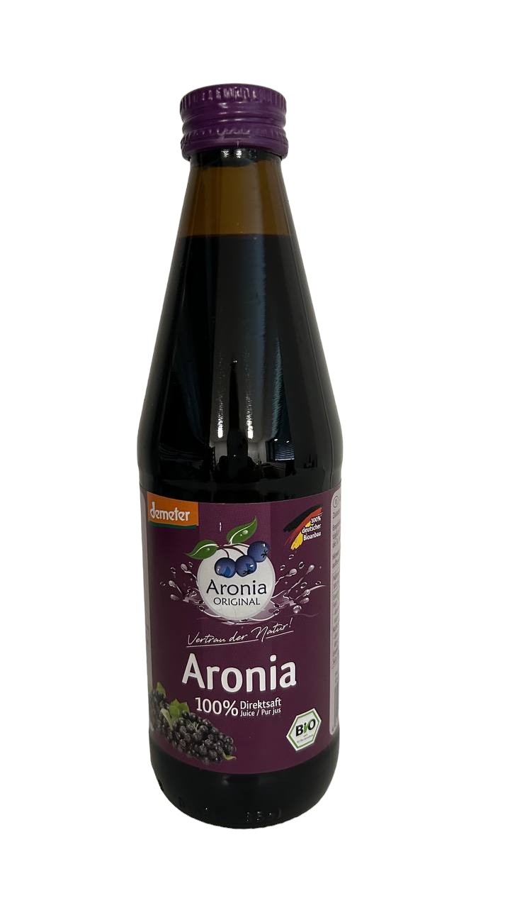 Zloženie: 100% bio šťava z Arónie, pasterizovaná.