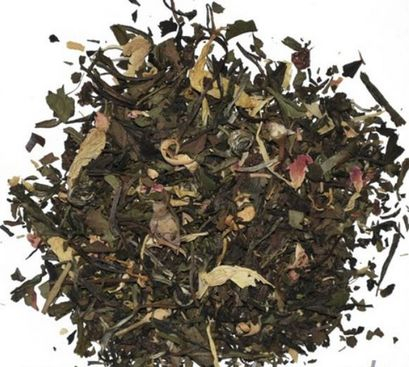 Zloženie: China Pai Mu Tan, zelené čaje China Fog Tea, China Sencha, China Lung Ching, China Gunpowder, China Jasmin, China Jasmine Jade Pearl, lupienky ruže, kúsky višní, kvety jazmínu, pomaranča a slnečnice.