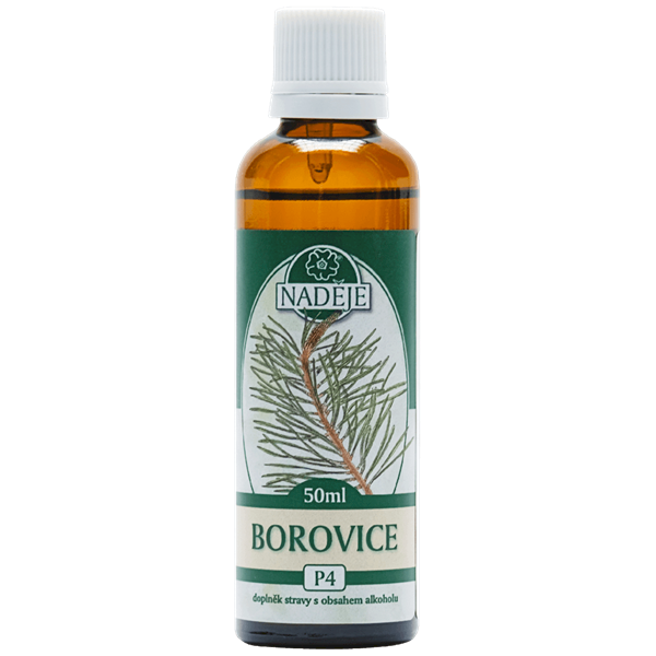 Zloženie: obsahuje púčikyborovice lesnej v 40% alkohole v pomere 1:1 s glycerínom.