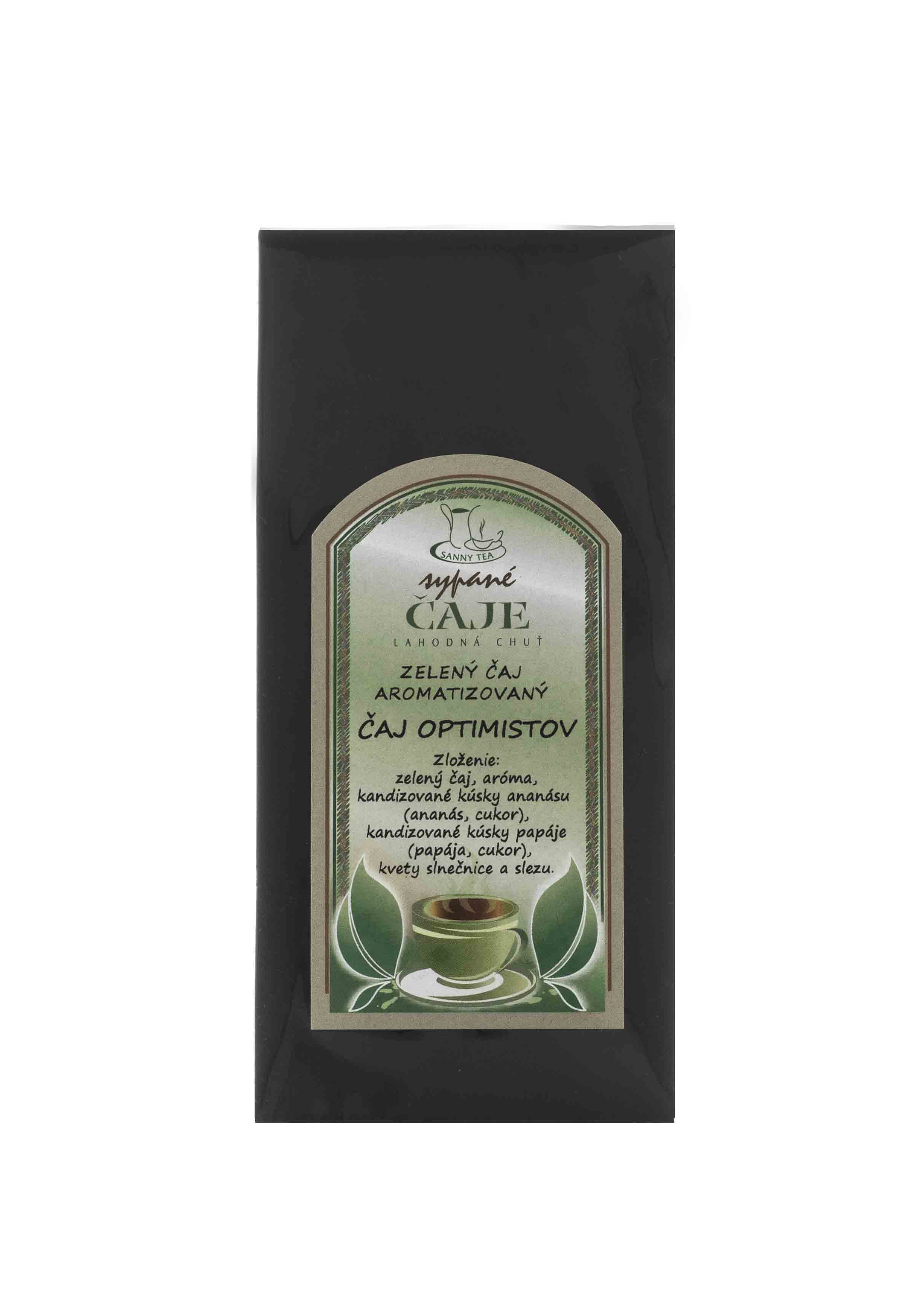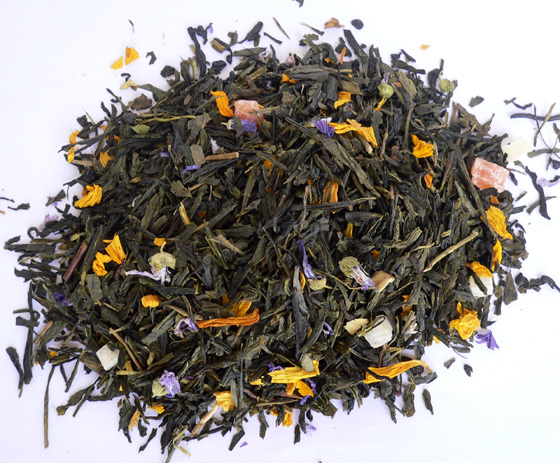 Zloženie: Zelený čaj, slnečnicové kvety, ananás, kúsky papáje, modré kvety slezu, aróma.