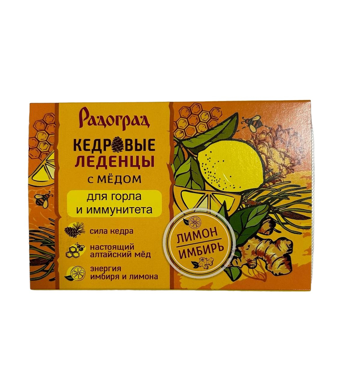 Zloženie: cukor, glukózový sirup, med, cédrový olej(borovica sibírska), živica z borovice sibírskej, kyselina citrónová, citrónový olej, extrakt zo zázvoru, vitamín C.