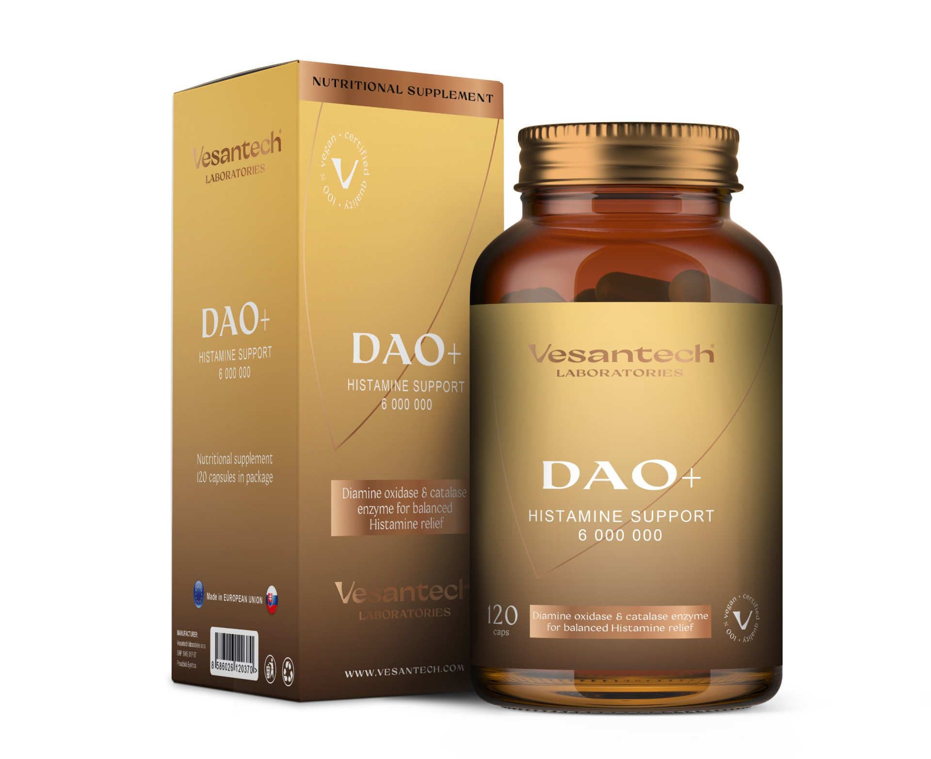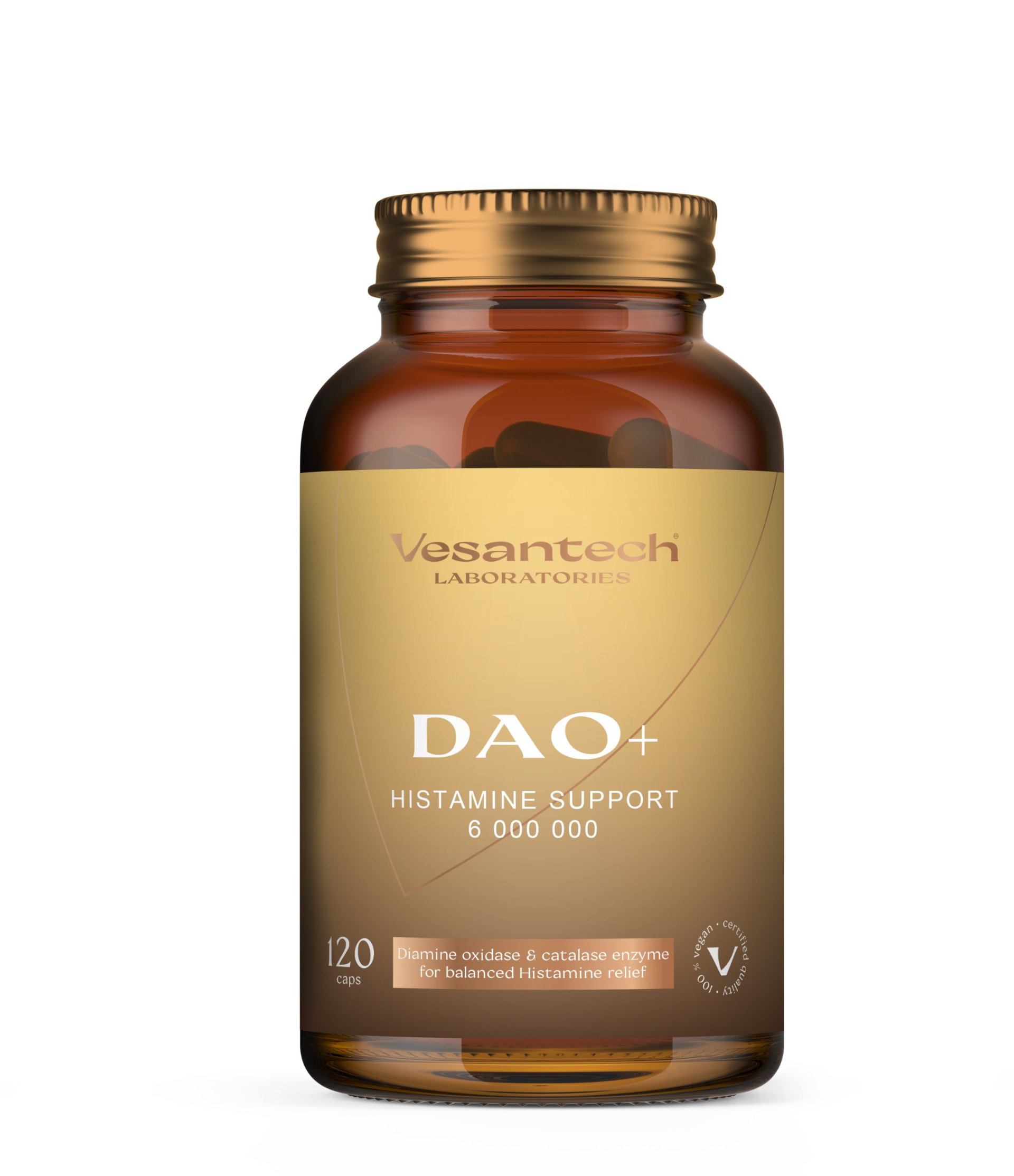 Diaminooxidáza DAO je kľúčový enzým pre odbúravanie histamínu a jeho správna funkcia je nevyhnutná pre udržanie rovnováhy histamínu v tele. Jeho hlavnou úlohou je rozkladať histamín, aby sa zabránilo jeho nadmernému hromadeniu a nežiaducim účinkom. Kataláza je enzým, ktorý rozkladá peroxid vodíka H₂O₂, čím chráni bunky a podporuje účinnosť DAO.