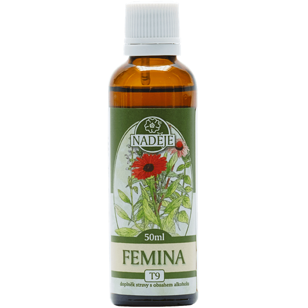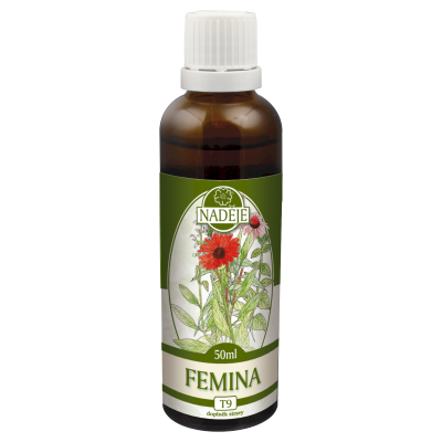 Výnimočná tinktúra na podľa originálnej receptúry známej českej bylinkárky pani Mgr. Podhornej pri hormonálnej nerovnováhe ženských hormónov. Femina to je zmes ligurčeka, medovky, hluchavky, nechtíka, šalvie, alchemilky a echinacei v špeciálnom pomere.