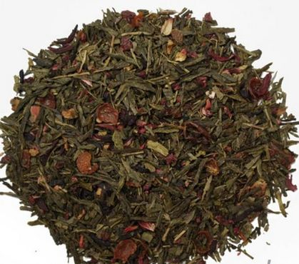 Zloženie: zelený čaj, ibištek, šípky, kúsky jablka, plody goji, maliny, granátové jablko, prášok z plodov Acai (acai, maltrodextrin ), aróma.