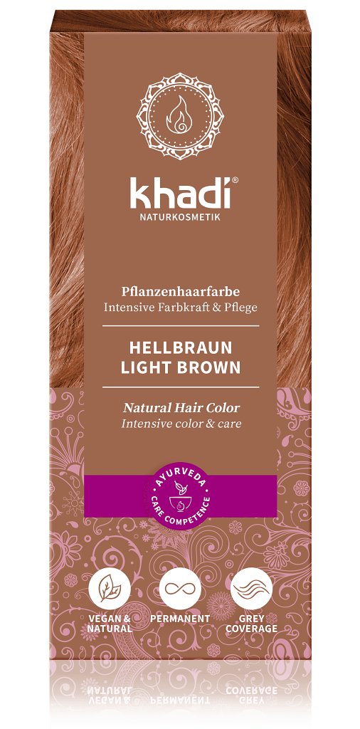 Khadi prírodná rastlinná farba na vlasy, odtieň SVETLO HNEDÁ farbí vlasy na svetlo hnedo.