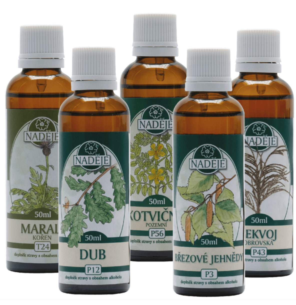 Zostava tinktúr z bylín, ktorá zaisťuje účinnú podporu hormonálnej rovnováhy a funkcie mužských reprodukčných orgánov.