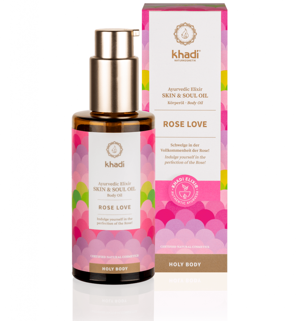 - ajurvédska skrášľujúce sila Khadi elixíru Ruže Láska rozmaznáva, regeneruje a intenzívne vyživuje aj tú najnáročnejšiu pleť