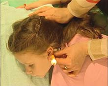 Najprv dieťaťu ukážeme sviečku, hravo mu vysvetlíme jej fungovanie. Môžeme mu dať malé zrkadlo, aby videlo ako horí sviečka. Je veľmi účinné, ak mu medzitým povieme rozprávku (napr.predstav si, že v tvojom uchu tancujú vírusy baktérie a preto cítiš bolesť. Teraz zavoláme víly liečiteľky, aby ich so svojím čarovným prútikom odstránili a teplý dym sviečky vyčistí ich miesto.) Ak zistíme, že dieťa má psychické problémy, opýtajme sa ho na dôvod prečo je smutné (rodič, učiteľ, profesor, súrodenec atď..) Ak sa to dozvieme, ukľudníme ho improvizovanou rozprávkou. Deti sú veľmi citlivé, sú na jednej vlnovej dĺžke s matkou (rodičmi), prežívajú ich problémy, prípadné konflikty a to všetko sa ukladá v strednom uchu. Vo viacerých prípadoch vírusová infekcia ani neexistuje a príčinu zápalu treba hľadať v nevyriešenom rodinnom konflikte, ktorý je pre dieťa nepochopiteľný.