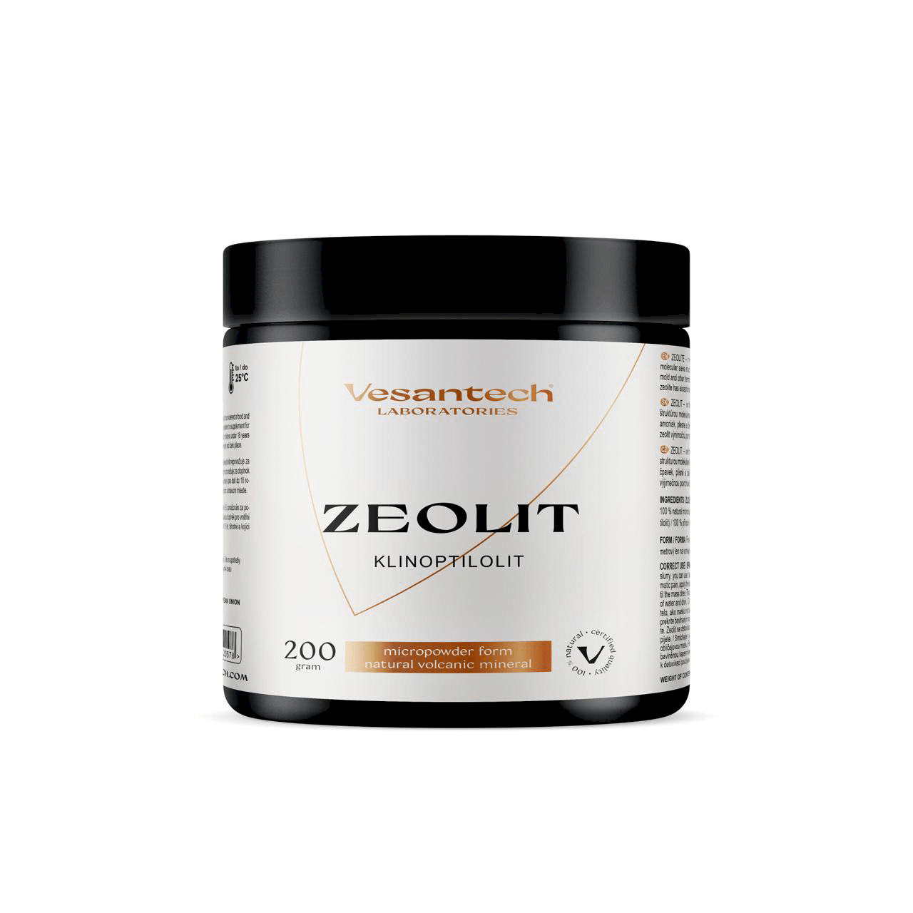 Zloženie: 100 % prírodný mikronizovaný zeolit (klinoptilolit) Forma: Jemný prášok (20 mikrometrov) Len na vonkajšie použitie.