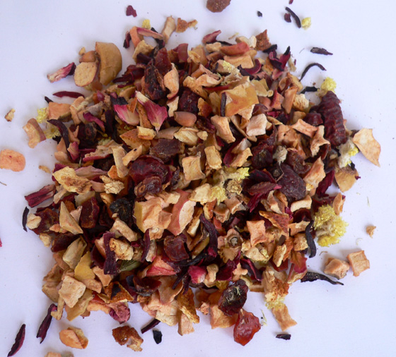 Zloženie: ibištek, jablko, šípky, pomarančová kôra, kardamón, kvet ruže a slamihy piesočnej, klinček, aróma.